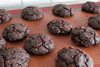 Enfourner dans un four préchauffé à 180°C, pendant 10 à 12 minutes. Laisser refroidir les cookies sur une grille, avant de les conserver dans une boîte en métal.