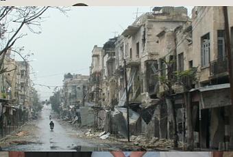 Je connaissais déjà la ville : j'y était passé en juillet 2011, au début des événements. C'était un des points chauds des troubles en Syrie (j'y avais constaté que le siège du parti Baath avait été incendié). Mais, tandis que nous roulions dans la ville martyrisée et nimbée de brouillard, je ne parvenais pas à la reconnaître.