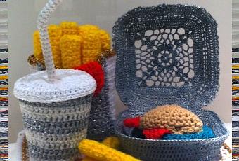 La " Junk Food " y est aussi à l'honneur, avec cette œuvre en crochet, fil de laine et lurex, d'Aurélie (2006) - voir photo ci-dessus -