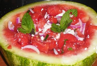 Avant de retourner dans la piscine, j'ai envie de vous faire partager une recette de Nigella que je réalise souvent l'été et que j'adore, la salade de pastèque à la féta!