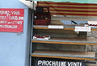 3 fois par semaine, nous pouvons aller chercher pêches et nectarines cueillies bien mures au petit producteur du coin....et voici comment ça se passe!!!