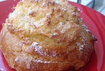Aujourd'hui à l'honneur une recette au coco originaire du Portugal. Chaque fois que je rentre au "pays" cette brioche fait partie des gourmandises auxquelles je succombe.
