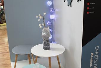 Le stand Libéron : effets décoratifs (pailleté, glossy…), peinture pour craies et aimantée, etc