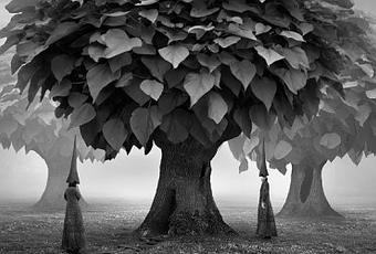 * La Timidité, timide comme toujours, se cacha dans une touffe d'arbre.