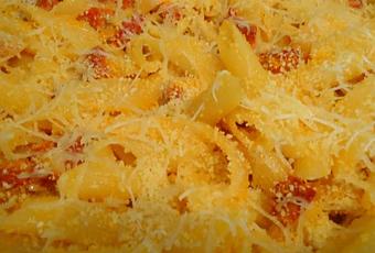 -Égoutter les penne, placez-les dans un plat allant au four. Ajoutez les jaunes d'oeufs battu puis saupoudrez de curry et mélanger.