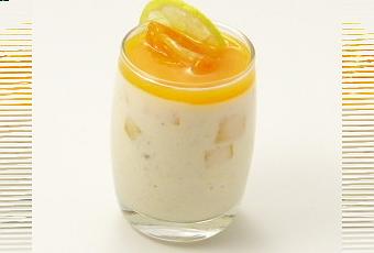 Il vous suffit d'utiliser une jolie mangue mûre à point taillée en petits dés et de les couvrir de la panna cotta à la vanille. Laisser prendre au froid et couvrir avec le coulis de fruits exotiques.