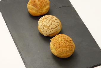 Pendant ce temps, dresser la pâte à choux sur un silpat. Sortir le craquelin du congélateur et tailler des petits carrés que vous déposerer sur le dessus des choux.