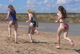 C'est ma voisine qui me supplie de ne pas partir de Kaluga ! Nan, en fait elle veut que j'aille me baigner avec elle.