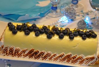 Voici la bûche que nous avons dégusté l'an passé. Je l'ai préparé à la façon d'une tarte au citron avec un fond de pâte sablée recouverte d'un moelleux à base de pâte d'amande et garni de myrtille. Le tout est recouvert d'une mousse au citron vert où est inclus une compote de myrtille. Décorée d'un glaçage et de meringue flambée au chalumeau au moment du service, cette bûche a fait l'unanimité!!