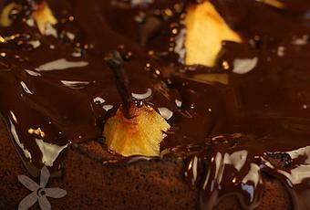 L'association poire et chocolat est toujours un succès ! C'est gâteau est fondant avec une texture humide, pour bien réussir cette recette, choisissez des poire de la même taille , j'ai utilisé des Williams, à la fin de la cuisson elles sont fondantes mais se tiennent bien.