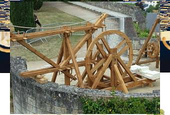 Il a monté sa loge habituelle, mais en plus, cette année, une machine de levage gigantesque, dont il expliquera les usages et le fonctionnement. Cette machine est directement inspirée des machines des chantiers du XIII e siècle.