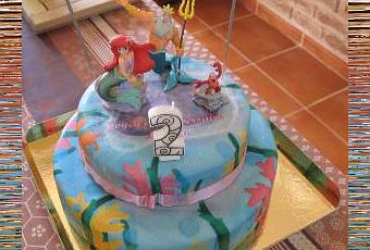 Le ruban autour du gâteau gondolait un peu et, hélas, c'était juste sur l'avant. Le dessin d'algues était aussi moins précis que la photo du site et ne correspondait pas exactement (pas de rochers pour les figurines, les deux gâteaux semblant plutôt faits pour être centrés).
