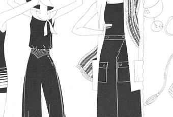 Eté 1929. Costume de bain Au Grand Frédéric. Pyjama Irande. Pantalon et veste Schiaparelli.