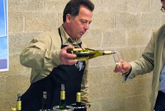 Les deux inséparables compères. A gauche : Lionel Gauthier servant une coupe de son Vouvray Brut (une très belle méthode traditionnelle) à son ami Christophe Chasle.