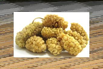 La mulberry séchée est un fruit doux et l égèrement sucré au goût très agréable. On retrouve dans la mulberry des principes actifs intéressants tel que le resvératrol. Ses teneurs en vitamine C et en fer sont aussi remarquables. On reconnait des propriétés à la mûre blanche : elle est idéale pour lutter contre l'anémie et les signes de fatigue. Elle se révèle efficace contre les vertiges et on la pense de plus en plus capable d'aider dans les cas de diabète de type 2. Cet effet sur le diabète s'expliquerait par le fait que les principes actifs de la mulberry ralentiraient l'absorption des sucres par l'intestin, limitant ainsi une hausse de la glycémie. Les mulberries seraient aussi efficaces pour limiter l'apparition des cheveux blancs ou aider contre les troubles de la constipation.