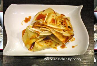 Prendere una crepe, mettere 8 pezzo di mela e un po 'di caramello di burro salato .