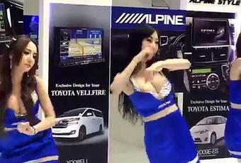 A Bangkok (Thaïlande), lors de l’International Motor Show 2015, un salon dédié au monde de l’automobile, un homme a assisté à une chorégraphie étonnante de la part des hôtesses du stand de la marque Alpine.