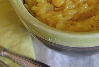 Faire chauffer l'huile dans une casserole, puis ajouter l'oignon finement émincé et le riz, laisser cuire 2 minutes à feu très doux.