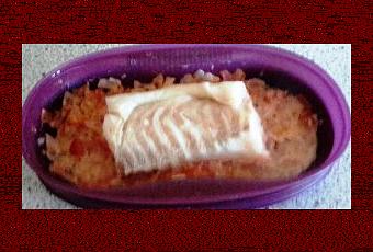 Déposer le dos de cabillaud sur ce mélange. Fermer la papillote et cuire 3 à 4 min au micro onde.