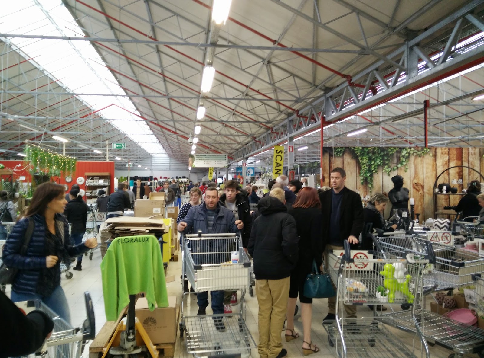 Du coup pour enfoncer le clou, je suis allé marcher ce samedi. Du moins, piétiner. Et quitte à le faire, autant aller à l'étranger, Marge et moi sommes donc passés par la Belgique pour découvrir le nouveau magasin dont les publicités parent les panneaux dédiés en ville depuis quelque temps: Famiflora. En gros, une immense serre qui vend des fleurs mais surtout de la déco pour la maison. Mon avis, en bref: trop de monde ! Et un intérêt limité...