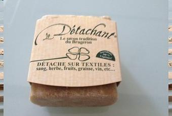 Le savon Détachant tradition du Brugeron , détache sur tous les textiles le sang, l’herbe, les fruits, la graisse, le vin, le sucre, etc…