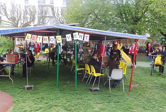 La charte de la Pêche (source : site de l’association)Leur but ? Éviter que l’argent parte à l’étranger (quand on achète des produits importés en grande surface, par exemple) ou en fumée en spéculation (le risque qu’on prend quand on dépose des euros dans une banque commerciale), et le conserver dans une zone précise pour relancer l’activité. Montreuil n’est d’ailleurs pas la première ville où une telle initiative a lieu. Le site de La Pêche déclare 26 monnaies locales en France« En général, les gens sont d’abord séduits par les billets ! raconte Chloé. Mais l’intérêt qu’ils ont pour l’activité locale compte aussi beaucoup ». Mais cet attrait se confirme encore assez doucement. Sylvain, militant très actif à l’association, s’impatiente : « Sur une ville de 104 000 habitants, nous ne sommes que 300 à utiliser la Pêche ! Les gens n’ont pas envie d’être bousculés dans leurs habitudes ». Et lui de faire le tour des stands du troc bio pour essayer de convaincre vendeurs et acheteurs de changer de mode de paiement.