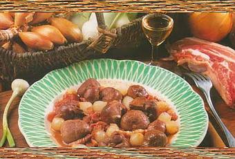 Selon les variantes locales, on cuisine cette recette avec du cidre ou du muscadet, mais les aromates de la cuisson restent les mêmes : lardons, petits oignons et échalotes.