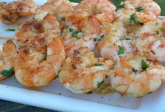 Ce soir c'est Brochettes de Crevettes marinée à l'ail et à l'estragon d'après une recette de " Papa en cuisine " lui il les avaient fait