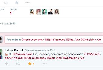 (Capture d’écran : échange sur Twitter avec Alexandra Diaz au sujet du #DéfiActivia)