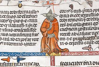 Le dessin de Yoda figure dans le manuscrit des " Décrétales du pape de Grégoire IX ", une collection de lettres papales. L'ouvrage a été créé dans le sud de la France, entre 1300 et 1340. C'est une illustration reliée à l'histoire biblique de Samson.