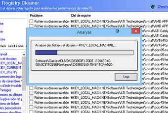 permet de scanner la base de registre à la recherche de clés invalides. Il fournit une liste de toutes les erreurs qui ont été trouvés, et vous pouvez choisir de supprimer tous les éléments, ou uniquement certaines erreurs. Avant que le programme supprime tous les clés, il crée automatiquement une sauvegarde du registre et vous permet d'annuler ensuite les modifications si nécessaire. Vous pouvez choisir de scanner l'ensemble du registre ou alors seulement certains secteur...