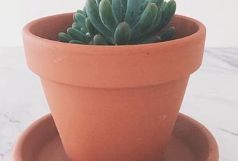 Avec l’arrivée du printemps et les journées qui sont de plus en plus chaudes, j’ai comme une envie d’ajouter de la verdure dans mon décor. Lorsque je suis allée m’acheter des petites plantes, il n’y avait pas beaucoup de choix pour des jolis pots troués avec et des assiettes qui fittent ensemble, voici donc pourquoi j’ai décidé de pimper un pot en terre cuite.