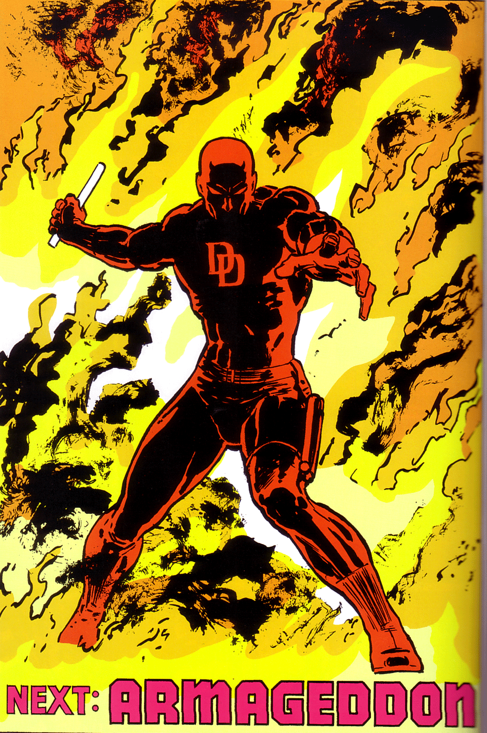 C’est dans les épreuves qu’on prend la dimension d’un homme. Et bien sur, à surhomme, super épreuve. Matt Murdock, avocat le jour et justicier la nuit, a toujours réussi à préserver, plus ou moins bien, sa double identité, qu’il a tout de même révélée à quelques personnes triées sur le volet. Parmi celles-ci, son ex petite amie, Karen Page, qui a fini par le quitter et tenter sa chance en Californie, à la recherche d’une gloire éphémère dans le cinéma. Mais la carrière de Karen a pris un mauvais pli : elle a fini par succomber aux tentations de la drogue et tourne même désormais des films X ! Par un jour de grand manque, elle finit par vendre son secret ( Matt est Daredevil ! ) contre une énième dose, et sans s’en rendre vraiment compte, va plonger l’existence de son rouquin bien aimé dans un véritable enfer. Kingpin ( Le Caïd en VF ) s’empare de l’info et décide de se venger de son ennemi de toujours, de le faire s'enfoncer inexorablement vers le néant, de le rôtir à petit feu…Tout y passe : Matt perd son emploi, ses comptes sont congelés, le fisc se retourne contre lui, il est déchu du barreau, jusqu’à son appartement qui est plastiqué : rien ne résiste au pouvoir du Caïd, dont le cône d’influence englobe quasiment toute la communauté. Le véritable diable, celui qui se nourrit de l'âme de la ville de New-York, ce n'est pas ce démon à cornes en costume rouge, cet homme qui n'a jamais autant été sans peur que depuis qu'il n'a plus rien à perdre (pour avoir tout perdu), c'est Wilson Fisk, le maître corrupteur, qui est digne de ce titre. Acculé, blessé, à la rue, Matt va devoir lutter pour sa survie, retrouver sa dignité avant même de pouvoir réclamer à nouveau le droit à l’existence, et la pente à remonter sera rude ! Une épreuve si cruelle, si éprouvante, que les éditions Lug, à la fin des années 80, ont choisi de faire l'impasse et de censurer la série, privant ainsi les lecteurs français d'un récit majeur et tourmenté.