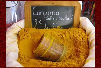 Le curcuma est l’épice essentielle du curry, son principal intérêt étant sa couleur, son arôme reste discret mais caractéristique, poivré et légèrement amer. Une pointe de curcuma dans l’eau de cuisson du riz ou dans un court-bouillon leur donne une belle couleur jaune.