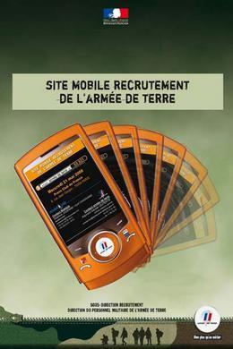 Depuis le 21 mai, ce site web se décline désormais en une version adaptée pour l’Internet mobile (accessible par SMS en envoyant “armée de Terre” au 53 321). Etant donné que les moins de 25 ans sont généralement les plus accros à leur téléphone portable, l’armée de Terre compte ainsi mieux cibler les éventuels candidats à un engagement dans ses rangs afin qu’ils prennent contact avec un centre d’information et de recrutement des forces armées (CIRFA).