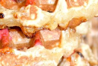 Après l'essai de la version classique des gaufres de Liège, je recommence cette recette avec des variantes, aujourd'hui une version aux pralines roses, pour un goût encore plus gourmand...