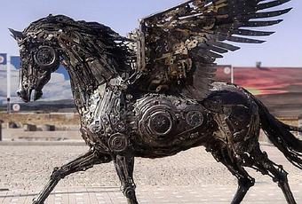 Le sculpteur iranien Hasan Novrozi a créé une collection de sculptures d'animaux en utilisant des objets recyclés et des milliers de pièces en ferraille.