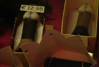 Des phalus surdimensionnés, des fesses presque dévoilées par une lingerie coquine très fine, des paires de seins ... et tout ça en chocolat. Les Belges savent mélanger deux de leurs plaisirs favoris et de leur savoir faire. Dans ce pays où la prostitution est légalisée et où le chocolat est une institution, les deux aspects de la culture s'accouplent bien.