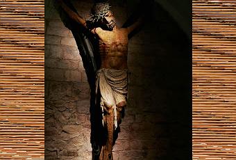 La Ste tunique (le cache biroute) est richement sculptée donnant un aspect des plus dynamiques à l'étoffe. Chaque drapé principal est complété en vagues de drapés secondaires, que les bodywears de David Beckham ou Dolce Banana en sont top ringards d'obsolescence (les boules que c'est pour ces 2 blaireaux du slip ridicule qu'on voit sous les falzars tombants des pubertaires boutonneux). Et pour finir, et ça pète aux yeux, notez la barbe semi-courte en forme de boucles à l'anglaise géométriquement arrangée façon akkadienne, araméenne, sumérienne, chaldéenne, assyrienne, babylonienne, enfin genre civilisation mésopotamienne. Pour ces civilisations, ces boucles étaient une marque de noblesse. Hors les Hébreux étant originaires de la Mésopotamie, le sculpteur n'aurait-il pas voulu faire un clin d'oeil au roi des Juifs? L'oeuvre est en bois de peu pliée (le peuplier), couverte de polychromie du début du XIVe siècle selon mes sources, la couche baroque ayant été retirée lors de la restauration de 1994. Les z'aut'Et comme je disais auparavant, nôtre "Crucifixus dolorosus" n'est pas unique, bien qu'inestimable en qualité, et assurément parmi le top 10 mondial au point qu'il est classé depuis 2010 sur la liste du patrimoine culturel national. Et quand je dis top 10, il n'en est pas beaucoup plus d'une centaine de ces crucifix au monde. Son premier équivalent déjà mentionné se trouve en la "St. Maria im Kapitol" de Cologne, sans doute pas le premier, mais fort certainement celui, par qui la célébrité arriva. Ensuite et toujours à Cologne, un splendide exemple en la "katholische Pfarrkirche St. Severin", pendu au plafond au-dessus de l'autel. Puis le crucifix susmentionné de la "Liebfrauenkirche" d'"Andernach", sans doute le plus ressemblant au nôtre. Le "Bocholter Kreuz" de la "St. Georg-Kirche in Bocholt", l'"Halterner Leidenskruzifix" de la "St. Sixtuskirche" de "Haltern am See", le "Borkener Gabelkruzifix" de la "propsteikirche St. Remigius in Borken", le "Coesfelder Kreuz" de la "Pfarrkirche St. Lamberti in Coesfeld", le "Gabelkreuz" de la "katholische pfarrgemeinde St. Simon und Judas Thaddäus in Thorr"... enfin bon, je ne vais pas tous les citer, mais comme dit, il y en a une dizaine en Allemagne qui méritent attention, et quelques-zuns en Autriche (dôme St Etienne de Vienne), PLogne (l'un provenant de l'église du corps du Christ, l'autre de l'ancienne église Ste Barbara, tous deux de "Wrocław", visibles aujourd'hui au musée national de Varsovie), en Suisse, et même en Espagne.
