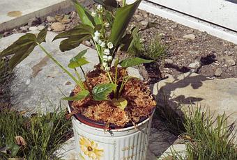 Mettre la bouture à coté du tube en plastique, remplir de terreau.