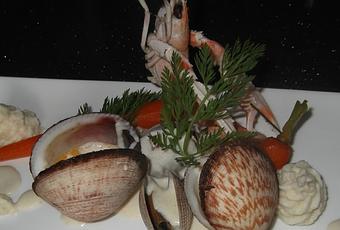 Pour les coquillages, dans une casserole, faire fondre l'echalotte emincé dans un peu d'huile, puis ajoutez les coquillages et le thym.