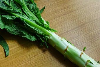 Que peut-on préparer avec ce légume ? En Chine, on essaie de garder le maximum de fraîcheur, c'est donc souvent en salade ou en plat sauté rapidement.Récemment en Chine, on a montré que les valeurs nutritionnelles des feuilles sont encore plus riches que celles de la tige, elles contiennent plus de vitamines et de minéraux. On peut les déguster en salade après les avoir blanchi rapidement, en plat sauté, en soupe ou préparer une farce avec.