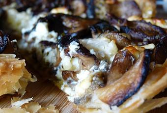 Entre imagination culinaire, et une forte envie de me régaler, j’ai décongelé une pâte feuilletée, que j’ai nappé de ce caviar. Mais voilà, quoi rajouter d’autre ? On ne va pas s’arrêter en si bon chemin ?!!! Un rapide coup d’oeil dans le réfrigérateur, et voilà la feta déjà émiettée, rapidement recouverte d’une bonne poêlée de ces mousserons émincés.