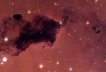 Exemple d’un « globule de Bok » photographié par Hubble au sein de la nébuleuse NGC 281. Selon une étude, un milliard d’années après le Big Bang, ce type de « poche » sombre de gaz et de poussières pouvaient déjà contenir de la vapeur d’eau en grande quantité, même si il y avait 1.000 fois moins d’oxygène qu’aujourd’hui