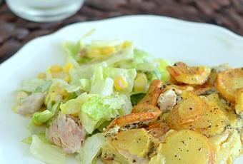 - Verser le mélange obtenu sur les pommes de terre. Saupoudrer de gruyère et enfourner environ 20 min à 190°.