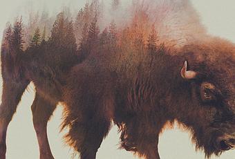 Quand la faune fusionne avec son habitat naturel. Un peu à l’image du générique de de la série True Detective, l’artiste norvégien Andreas Lie mélange des photographies d’animaux avec des paysages. Un jeu de superpositions maîtrisé qui nous donne des très belles images surréalistes disponibles à la vente chez Society6.