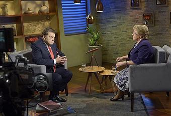 Michelle Bachelet sur le plateau de l’émission “¿Qué le pasa a Chile?” de Canal 13 durant laquelle elle a annoncé demander la démission de son gouvernement (photo Gobierno de Chile)