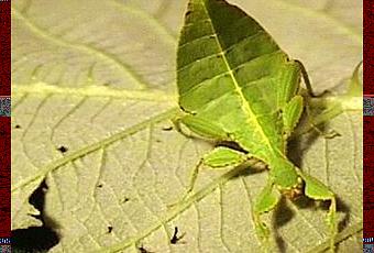 Ce sont des phasmes ou phyllies. La ressemblance de cet insecte avec une feuille d'arbre est spectaculaire. Ils sont originaires du Sud-est asiatique. Ce sont des insectes herbivores, leur activité étant principalement nocturne.