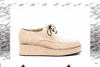 Derbies compensées et sandales se déclinent en velours ou en cuir.