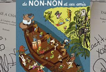 Ma préférence et gros coup de coeur va pour Le fabuleux voyage de Non-Non et ses amis. Non-Non reçoit une lettre de son cousin qui l'invite dans une drôle de contrée à la consonance anglaise! pour y faire un concert surprise. Tous les amis de Non-Non panique car ils n'auront jamais le temps de répéter car ils doivent tout organiser et préparer le voyage. C'est un voyage long, à la rencontre de pays, de paysages (mer, montagne, désert, forêt, jungle, ville). Il faut prendre un vélo-camping-bus puis l'avion, le bateau et même la montgolfière. Gros bonus pour la double page à l'aéroport bourrée de détails et de petits personnages qu'on s'amuse à reconnaître (Schtroumpfs, Barbapapa, Babar, Mickey...) c'est trop fun!